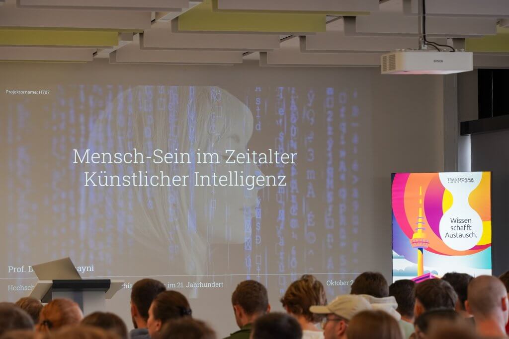 Im philosophischen Teil rückte Prof. Mahayni die Frage „Was ist der Mensch?“ in den Mittelpunkt. Emotion, Empathie und Bewusstsein seien Eigenschaften, die den Menschen von Maschinen unterscheiden. Zudem betonte er, dass AI Literacy, also die Fähigkeit, KI kritisch und reflektiert zu nutzen, eine der wichtigsten Kompetenzen der Zukunft ist.