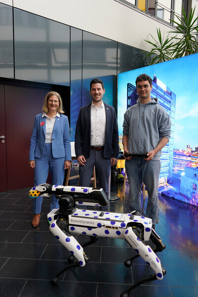 Auch im Mafinex konnten Besucher*innen die Roboterhündin GRACE in Aktion sehen, die den Einsatz KI-gestützter Robotik demonstrierte. Eine interaktive „Green Ideas“-Challenge in Kooperation mit dem Gründungszentrum der TH Mannheim MARS – Center for ENtrepreneurship lud dazu ein, mit Klemmbausteinen eigene nachhaltige Lösungsansätze zu entwickeln.